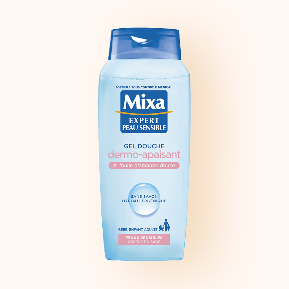 - Quotidiennement, la douche peut provoquer des tiraillements, sécheresse et inconforts. Pour un confort optimal des peaux sensibles, Mixa a développé le Gel Douche dermo-apaisant.