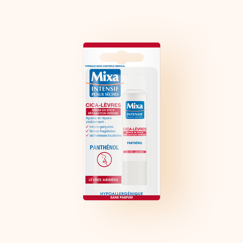 Testé sous contrôle dermatologique, le sérum en stick CICA-LÈVRES Mixa est hypoallergénique et formulé pour minimiser les risques d’allergie.Tous les soins Mixa sont FORMULÉS ET TESTÉS SOUS CONTRÔLE MÉDICAL pour vous assurer sécurité et tolérance.