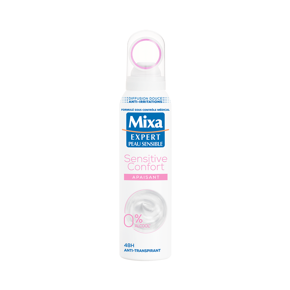 Le 1er Anti-Transpirant 48h Mixa aux propriétés apaisante avec une diffusion en brume.