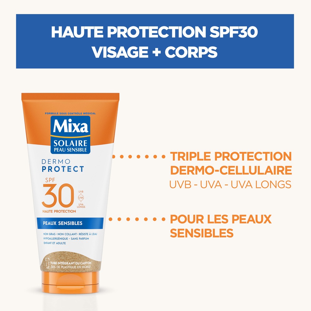 Le Lait Solaire pour Peaux Sensibles Mixa est spécialement formulé pour protéger efficacement le visage et le corps des peaux sensibles.