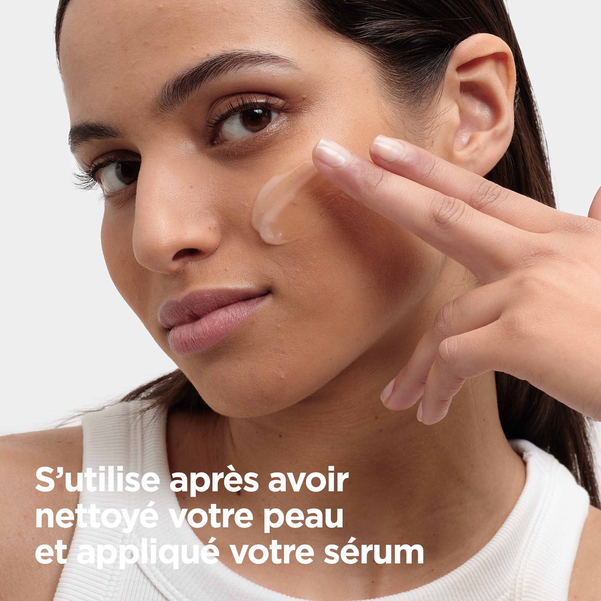 Utilisez après le nettoyage et l’application de votre sérum quotidien. Évitez le contour des yeux.