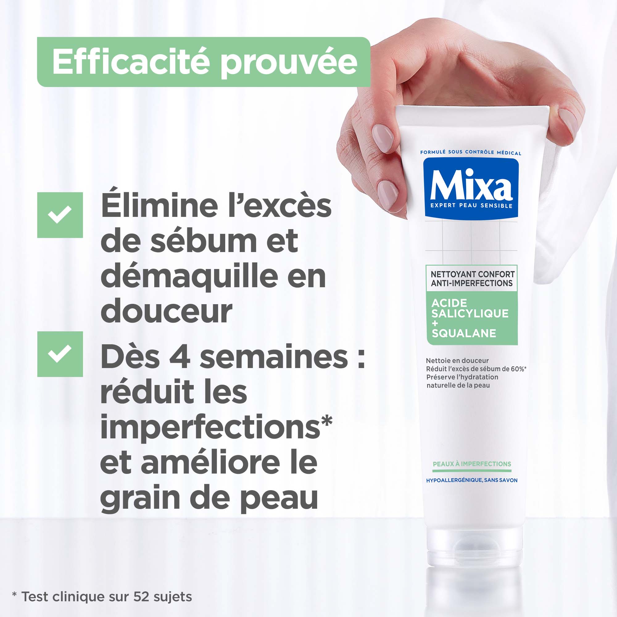 Ce nettoyant acide salicylique est compatible avec les sérums et les crèmes Mixa.